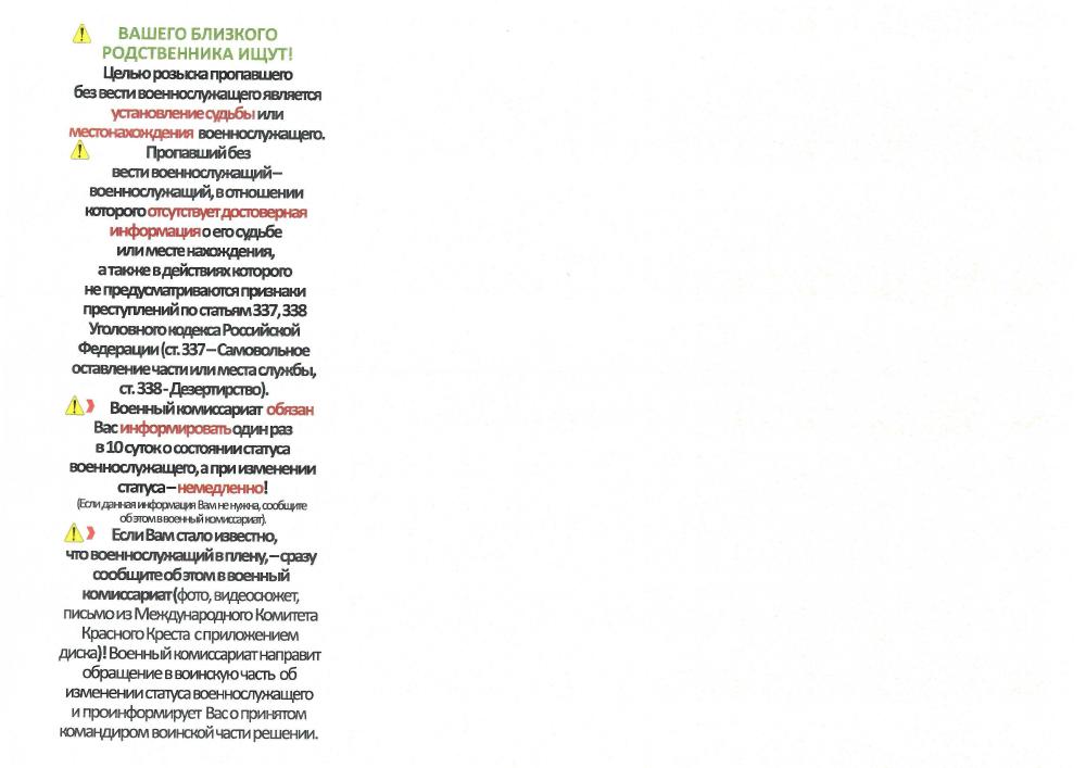 Памятка по поиску военнослужащего