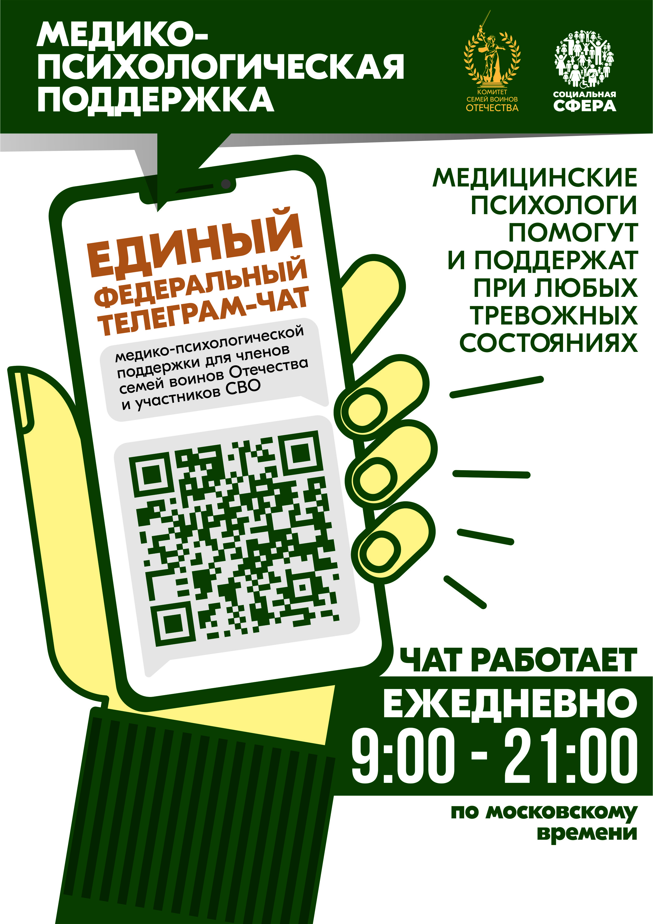 С июля 2024 года заработал единый федеральный чат Комитета семей воинов Отечества медико-психологической поддержки семей и участников СВО.